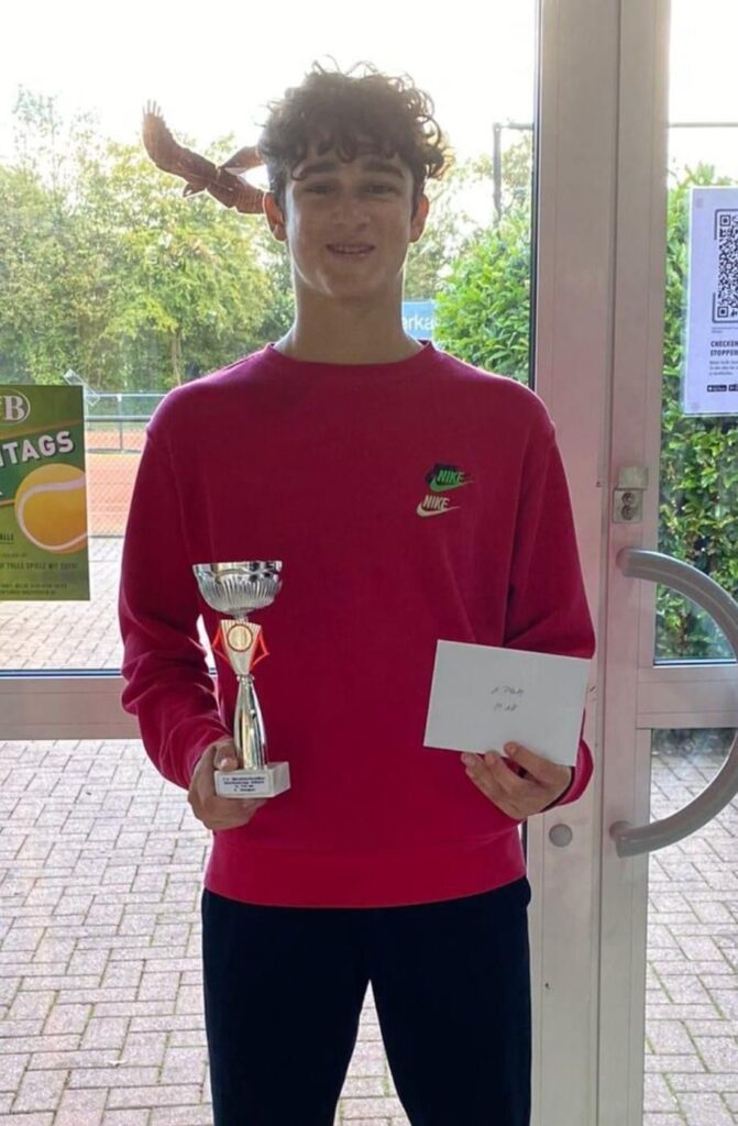 O atleta do projeto IEVP/Tobe Brazil João Pedro Mourão (15) embarcou no mês de agosto para uma experiência na Alemanha. Lá ele treina na Tobe Tennis Academy e disputa partidas de interclubes e federação alemã. Neste final de semana, ele foi campeão do Torneio Herbstcup 2022 em Breistscheid (Alemanha) na categoria sub 18.
